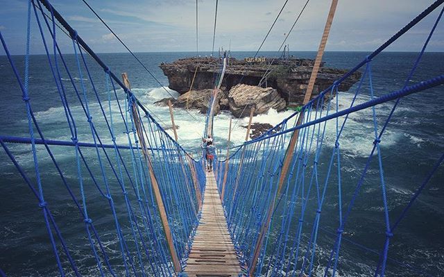 Menurut aku yang jembatan lebih menantang adrenaline, karena lebih lama dan kalian yang harus berusaha sendiri. Sebenarnya jarak jembatan ke permukaan laut yang langsung anda di bawah tidak terlalu tinggi, tetapi itulah yang juga membuat kaki kita semua gemetaran. Ombak nya besar banget, apalagi kalau sudah sore saat angin juga ikut menggoyangkan jembatan nya, kalian bisa basah terkena cipratan ombak yang begitu besar juga! Seru banget!